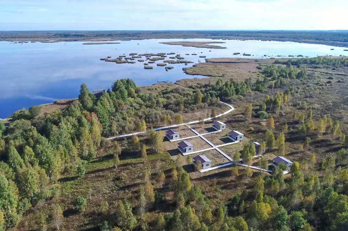 Котловина округлой формы, слегка вытянута с северо-запада на юго-восток, среди лесного массива.