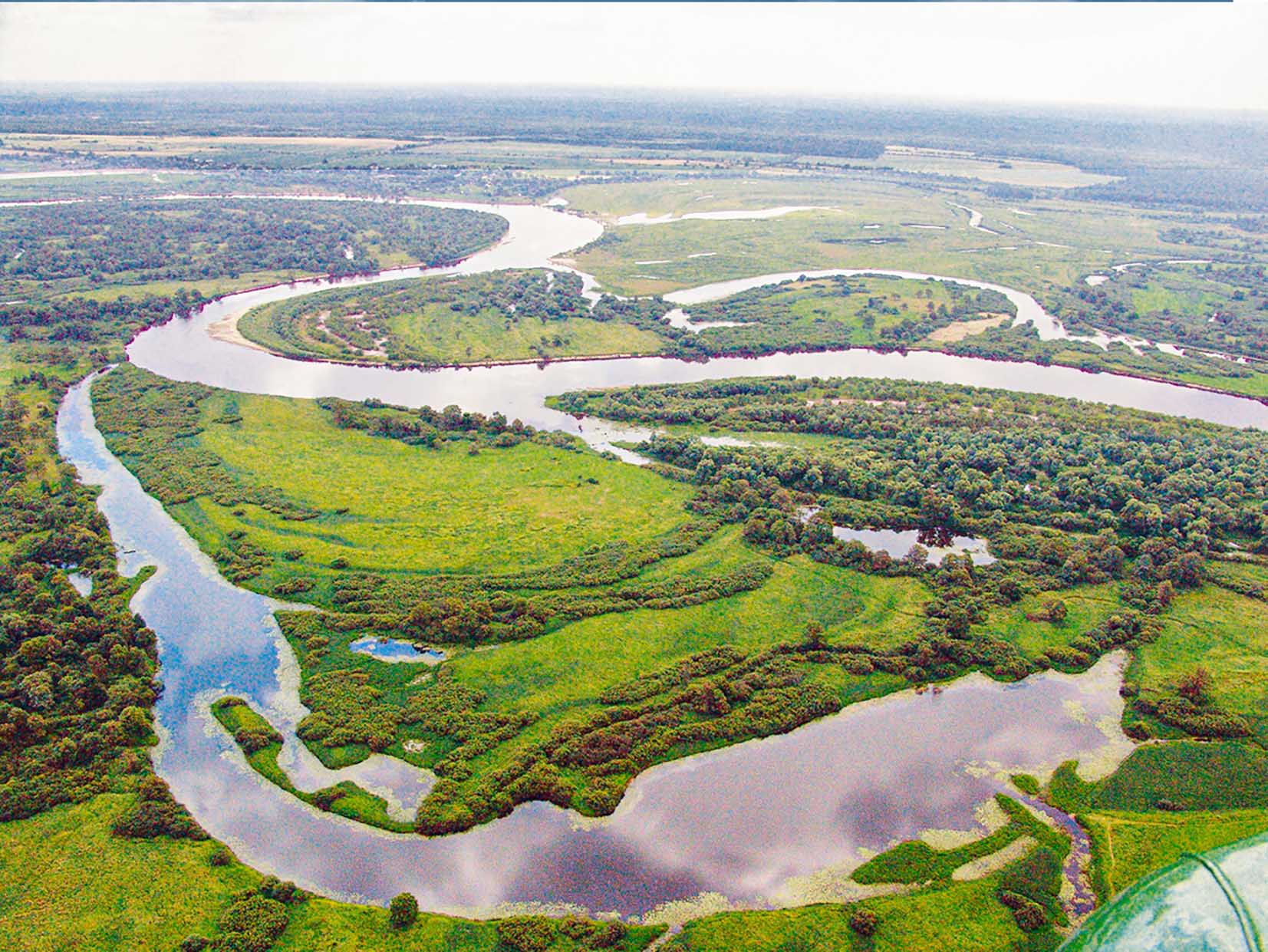 Река Припять — главная водная артерия Полесской низменности. Берёт начало в Ковельском районе Волынской области на высоте 168 м над уровнем моря. На протяжении 204 км река протекает по территории Украины, далее почти 500 км — по территории Беларуси и затем 57 км опять по территории Украины. Впадает с северо-востока в Киевское водохранилище (река Днепр). От истока до города Пинск река течёт преимущественно с юго-запада на северо-восток. У Пинска Припять поворачивает на восток и течёт почти по широтному направлению до города Мозырь. Далее меняет направление на юго-восточное до самого устья. Форма бассейна реки близка к квадратной с некоторой изрезанностью водораздельной линии. Максимальная длина 460 км, средняя ширина 256 км, средняя высота 179 м.