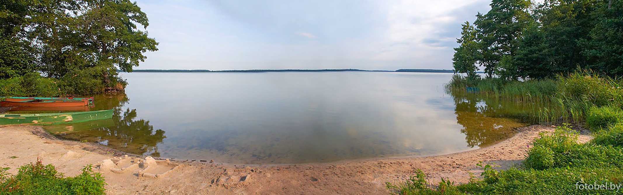 Берега низкие, торфянистые, поросли кустарником. На юго-западе, западе и северо-западе песчаный береговой вал высотой до 4 м. Дно вдоль берегов песчано-илистое, глубже дно выстлано сапропелем. Озеро сильно зарастает.